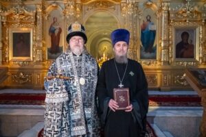 Также за богослужением правом служения Божественной литургии с отверстыми царскими вратами по «Отче наш…» был награжден настоятель храма Рождества Пресвятой Богородицы села Новопанское протоиерей Алексий Аникин.