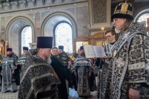 За богослужением звучал отрывок из книги Бытия о всемирном потопе. В наставлении после Литургии митрополит Марк обратился к этой теме, напомнив молящимся, что даже в самые тяжелые времена, когда нравственный климат вокруг кажется невыносимым, важно помнить: Господь всегда указывает нам путь спасения. Как праведный Ной среди всеобщего развращения обрел благодать пред очами Божиими, так и каждый из нас призван видеть цель своего пути и с верой следовать за Христом. Дух благодатный, царящий за вечерней великопостной Литургией, наполнил сердца молящихся утешением и радостью о Господе.