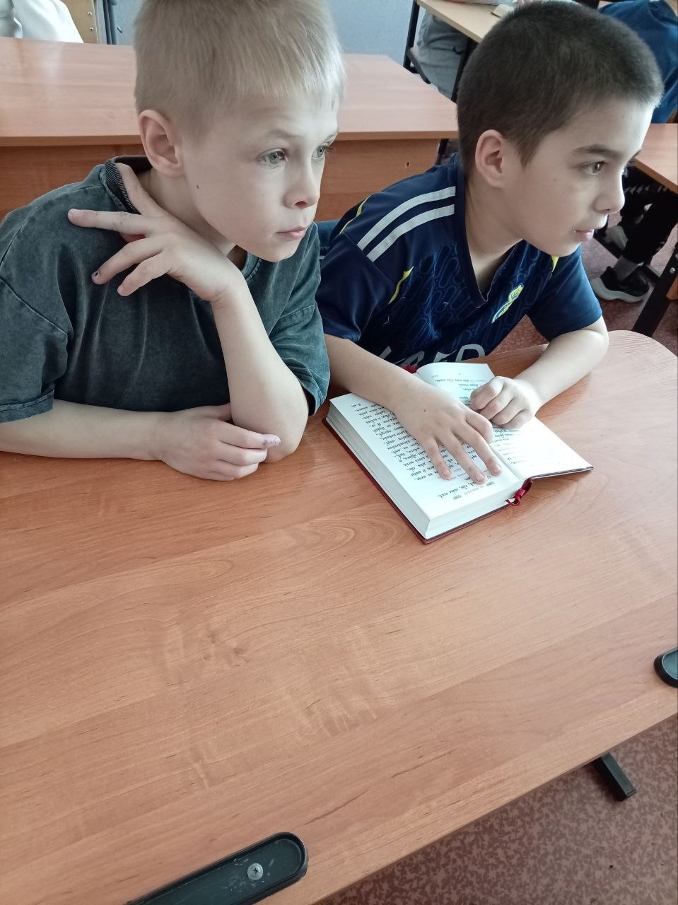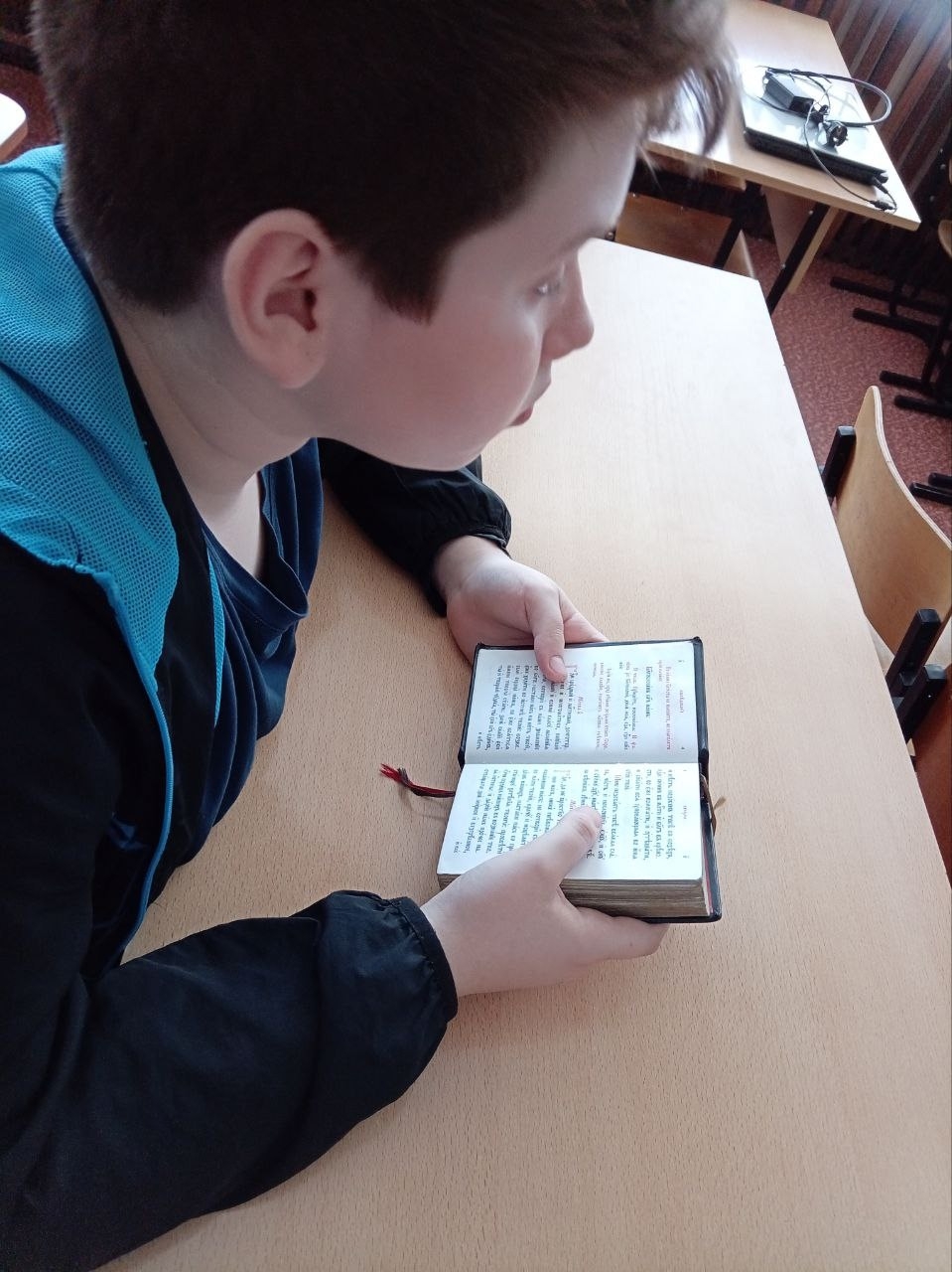 А потом началось самое интересное. Отец Алексий достал настоящие сокровища — Новый Завет и богослужебные книги. Ребята смогли не просто посмотреть на них, а прикоснуться к живому богослужебному слову.