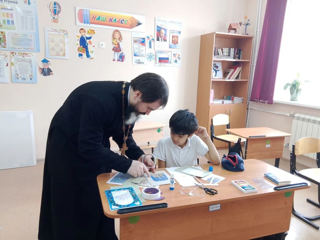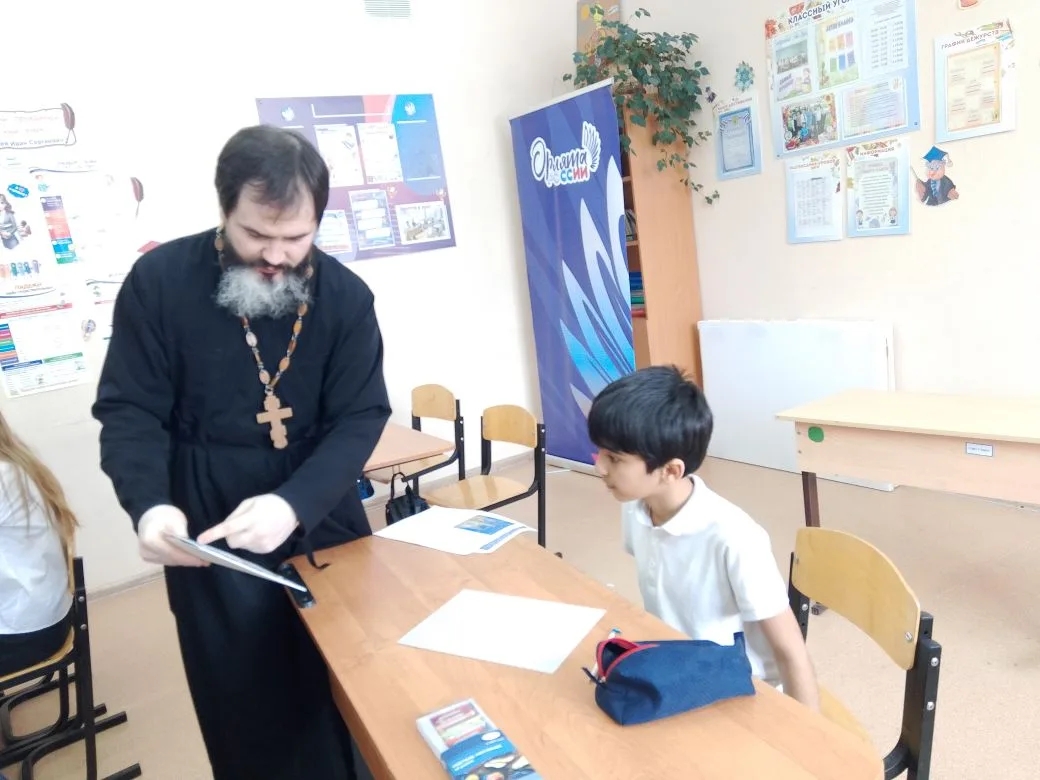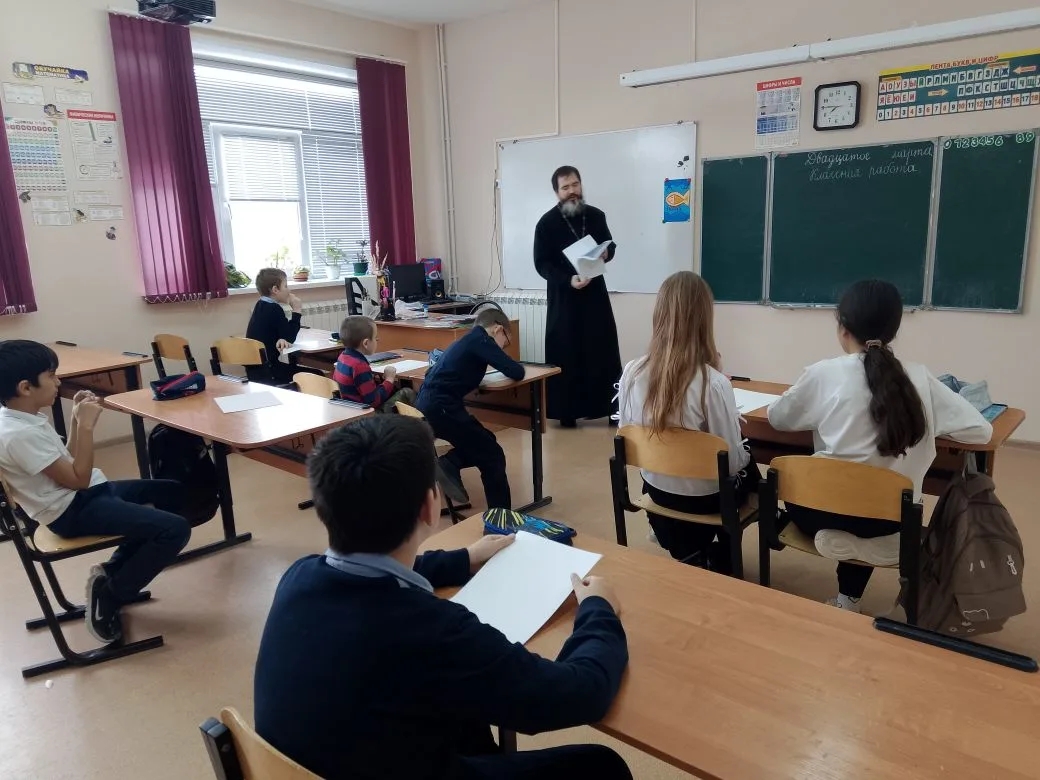 В Чапаевской школе прошёл очередной «Добрый урок» — проект, который давно стал доброй традицией. Провёл его клирик нашего благочиния иерей Даниил Рантовов.