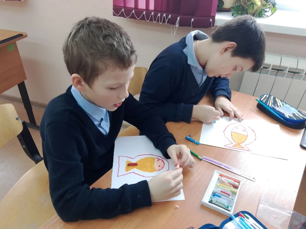 На этот раз занятие было посвящено углублённому знакомству с Символом веры — основой православного вероучения. Ребята активно участвовали в беседе: разбирали непростые, но важные богословские истины доступным для детей языком. А чтобы закрепить услышанное, юные участники взялись за кисти и карандаши — рисовали символы христианства, стараясь через образы выразить то, что только что открыли для себя в слове.