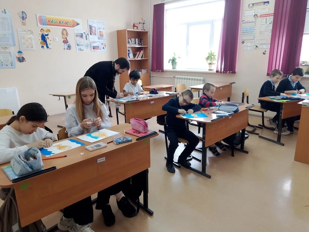 Особенно трогательным моментом урока стала совместная творческая работа, посвящённая празднику Рамадан и окончанию поста у мусульман. Вместе с мальчиком-мусульманином сделали красивую открытку-поделку. Этот простой и искренний жест стал настоящим уроком добрососедства, уважения и дружбы — того, что объединяет людей независимо от традиций и вероисповедания.