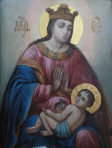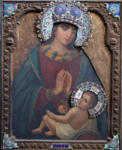 На иконе Младенец держит в руках яблоко, а сам образ относится к иконографическому типу Умиление. В Благовещенский храм к иконе потянулись люди со своими скорбями и просьбами, стали рассказывать о новых случаях помощи и исцелений. Всего владыка Иосиф собрал материала на пять, правда, небольших книжек. Все эти события и послужили поводом к прославлению иконы.