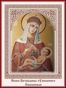 Смоленская икона Божией Матери, именуемая «Умиление», явилась в 1103 году в Смоленске. Этот образ, сыгравший особую, вдохновляющую роль в период обороны Смоленска от польских захватчиков в начале XVII века (1609–1611 гг.), находился в лагере русских войск воеводы Шеина, в течение 18 месяцев удерживавших неприятеля от разграбления города.