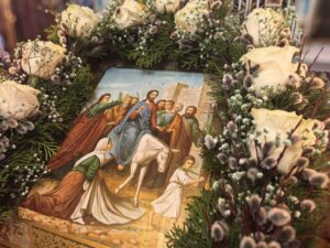 «Вспомним, как встречали Господа жители Иерусалима, — сказал батюшка. — Они постилали свои одежды, резали пальмовые ветви и восклицали: «Осанна! Благословен Грядущий во имя Господне!» Чего они ждали? Земного царя, который освободит их от римского владычества, даст им силу, богатство и благополучие. Они хотели, чтобы Христос стал их царём здесь и сейчас, на этой земле. Но Господь въезжал в Иерусалим не на боевом коне, а на молодом осле — образе кротости и мира. Тем самым исполнилось древнее пророчество Захарии: «Се, Царь твой грядёт к тебе, кроткий, сидя на ослице и молодом осле»».