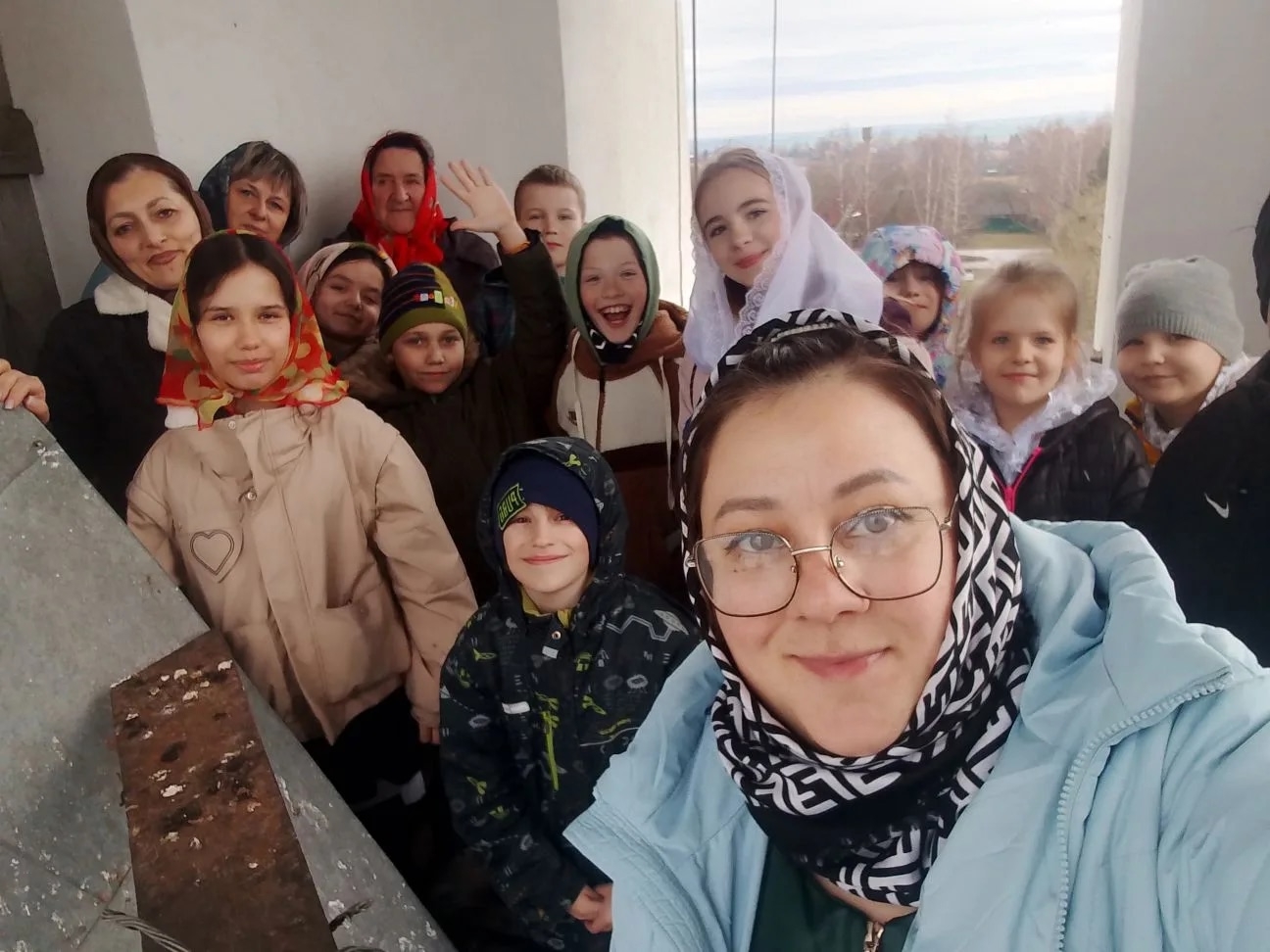 Колокола Успенского храма заговорили детскими руками. Звон летел над полями, над домами, над селом — и казалось, что сама природа вторит этой пасхальной радости. Школьники, сменяя друг друга, ударяли в колокола, и каждый удар был маленькой проповедью о Воскресшем Спасителе.